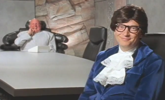 Dopo il lacrimevole video di Steve Ballmer, mi sono imbattuto in questo, dove Bill Gates – ex CEO di Microsoft – fa la parodia di Austin Powers. E c’è anche Ballmer, naturalmente.