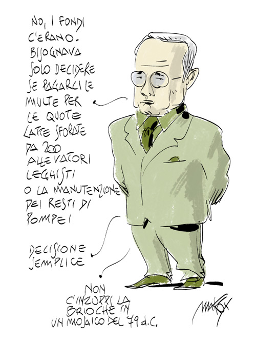 La storia del crollo di Pompei è tremenda. Il Ministro per i beni culturali Sandro Bondi si sarebbe dovuto dimettere non un minuto dopo il crollo, ma tre minuti prima dell’ennesimo annuncio di Tremonti sui tagli alla cultura. E poi, diciamocela tutta, se si dimettesse Bondi non ci perderemmo molto.